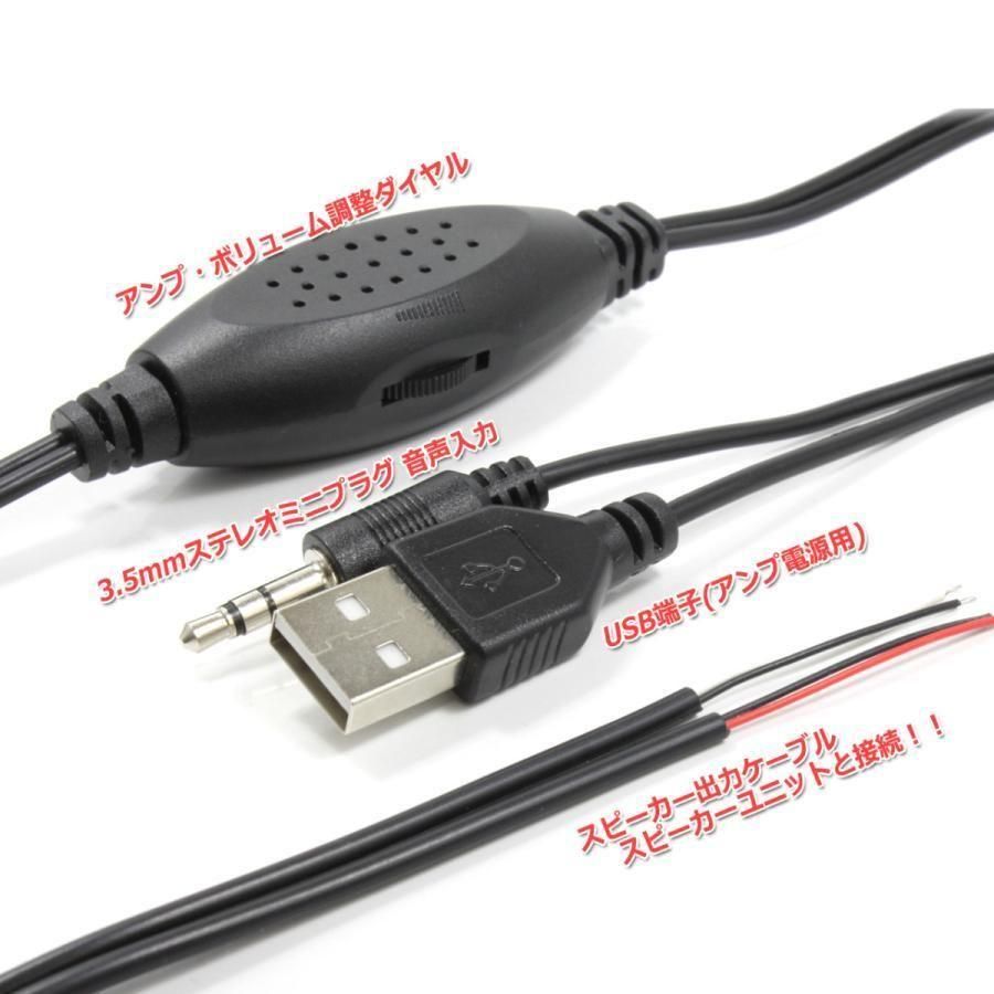 アンプの電源として5V給電用にUSB端子(Type-A端子)を装備し、PCやUSBタイプのACアダプターへ接続することでACアダプター不要!ライン音声入力は3.5mmステレオミニプラグによる入力接続で、携帯プレーヤー・タブレット・スマホ・DACなど様々な機器と接続可能。スピーカー出力ケーブルをスピーカーユニットに接続するだけでパワードスピーカーが完成します。
