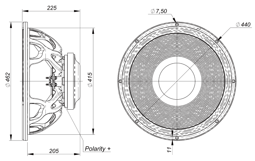 Maltcrossテクノロジーは4インチ(100mm)ボイスコイルにおける電力圧縮効果を最小化し、超低空気流動ノイズを発生させながら低温状態を維持します。これらのトランスデューサーには高調波歪みと相互変調歪みを低減するアルミニウムリングも採用されています。