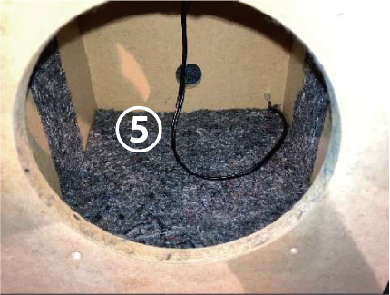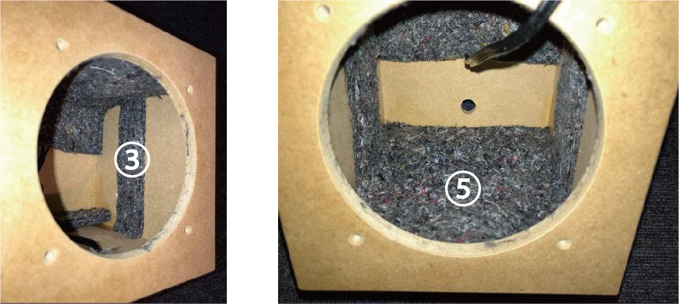 ⑤を底面に貼って吸音材の貼り付けは完了です。