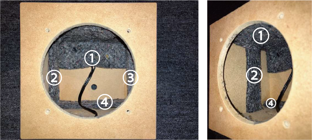 〇高域よりのユニットであれば②、③の幅のサイズを広くして吸音