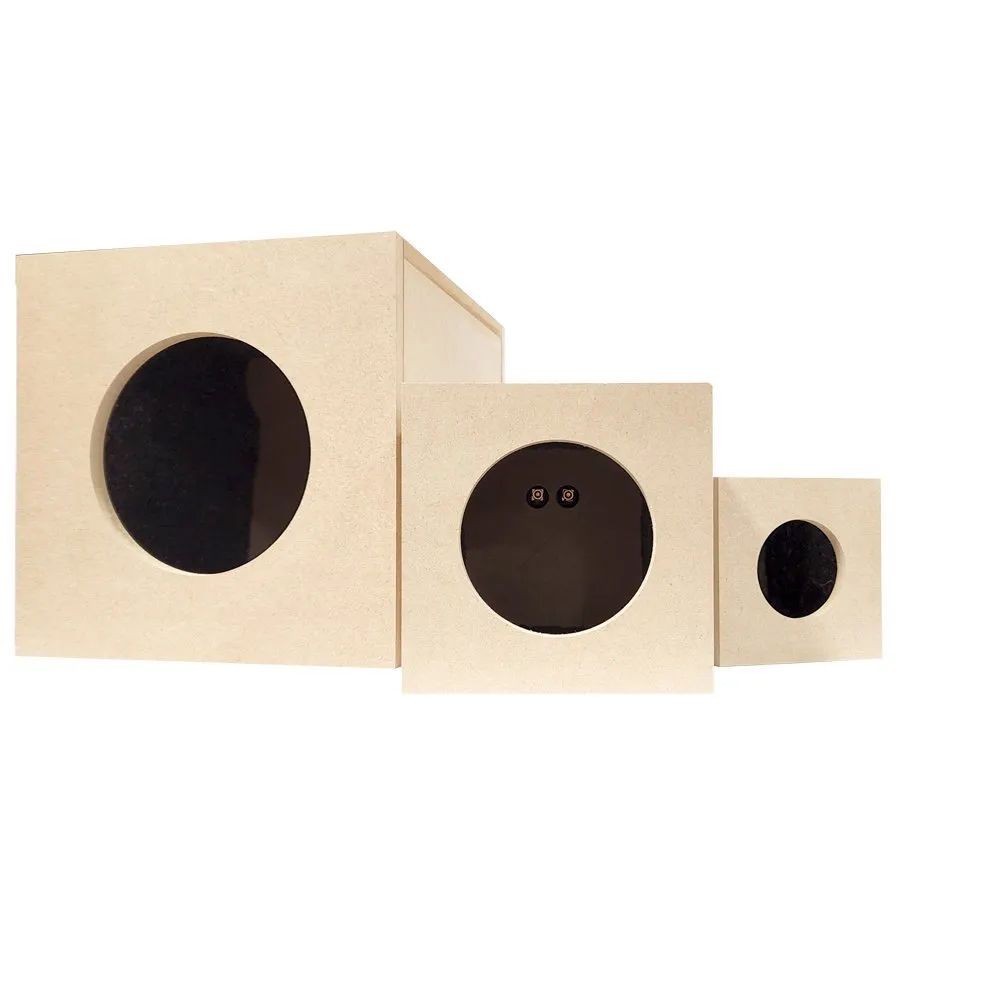 また、自由度が高いというのはこれらの商品は板材のみもしくは組み立てエンクロージャーのみのため、ユニットはもちろんのこと、ターミナル、端子、内部配線、吸音材はご自身で選定する必要があります。